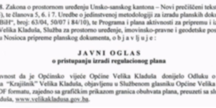 Šumatačke luke i Krajišnik Javni oglas o pristupanju izradi regulacionog plana_1