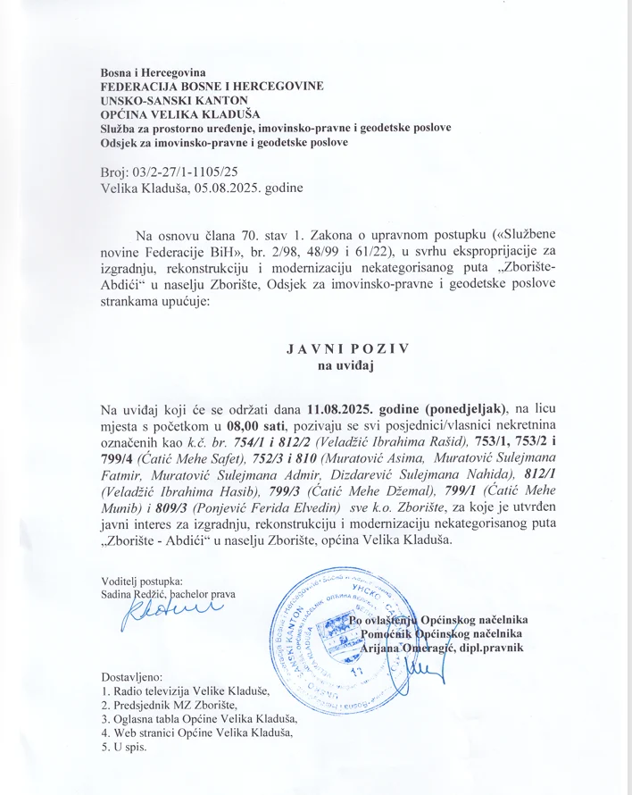 © 2018 Općina Velika Kladuša. Sva prava su zadržana