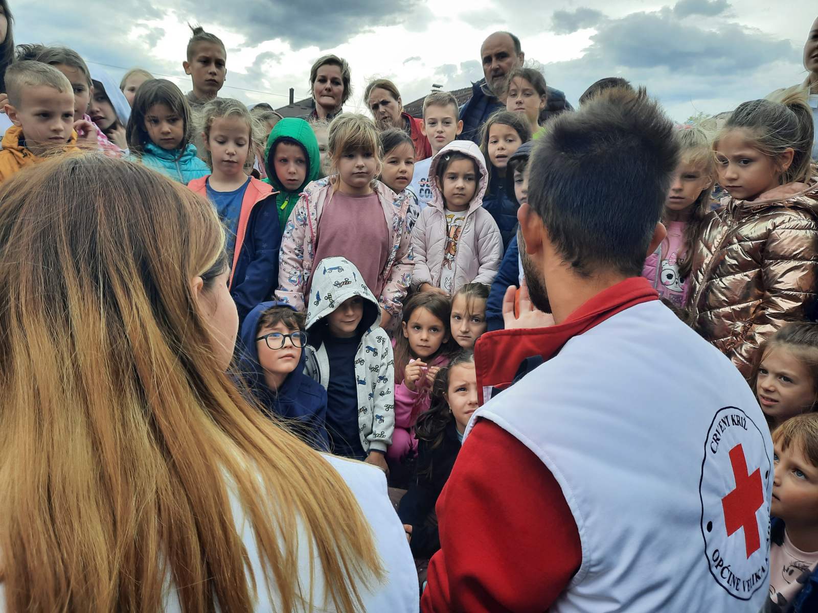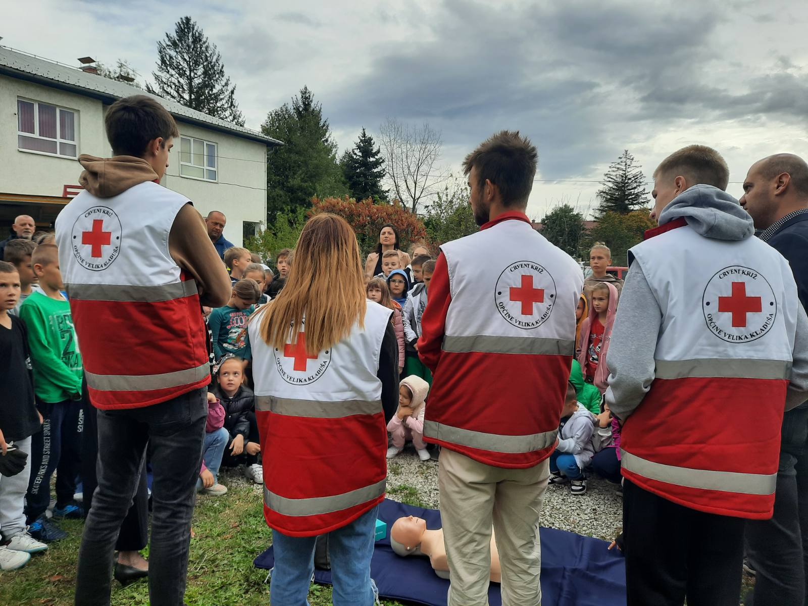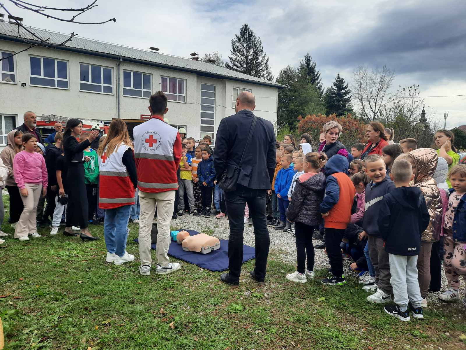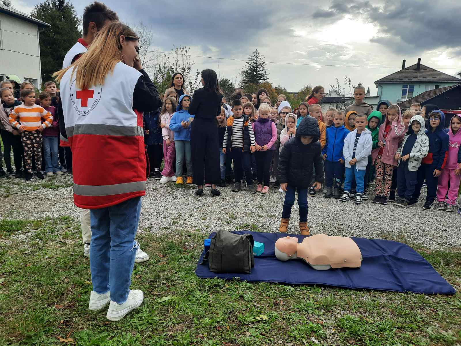 Učenicima je prikazano ukazivanje prve pomoći unesrećenima koju su izveli volonteri Crvenog križa.