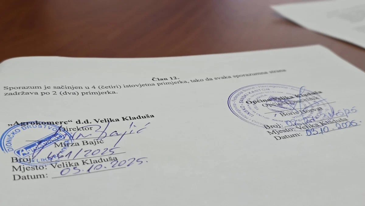 Danas je zaključen sporazum o faktičkom ulasku u posjed nekretnina – kompleksa “Stari grad – Velika Kladuša”. Sporazum je zaključen između privrednog društva „Agrokomerc“ d.d. Velika Kladuša, kojeg je zastupao direktor Mirza Bajić, i Općine Velika Kladuša, koju je po ovlaštenju zastupao općinski načelnik Boris Horvat.